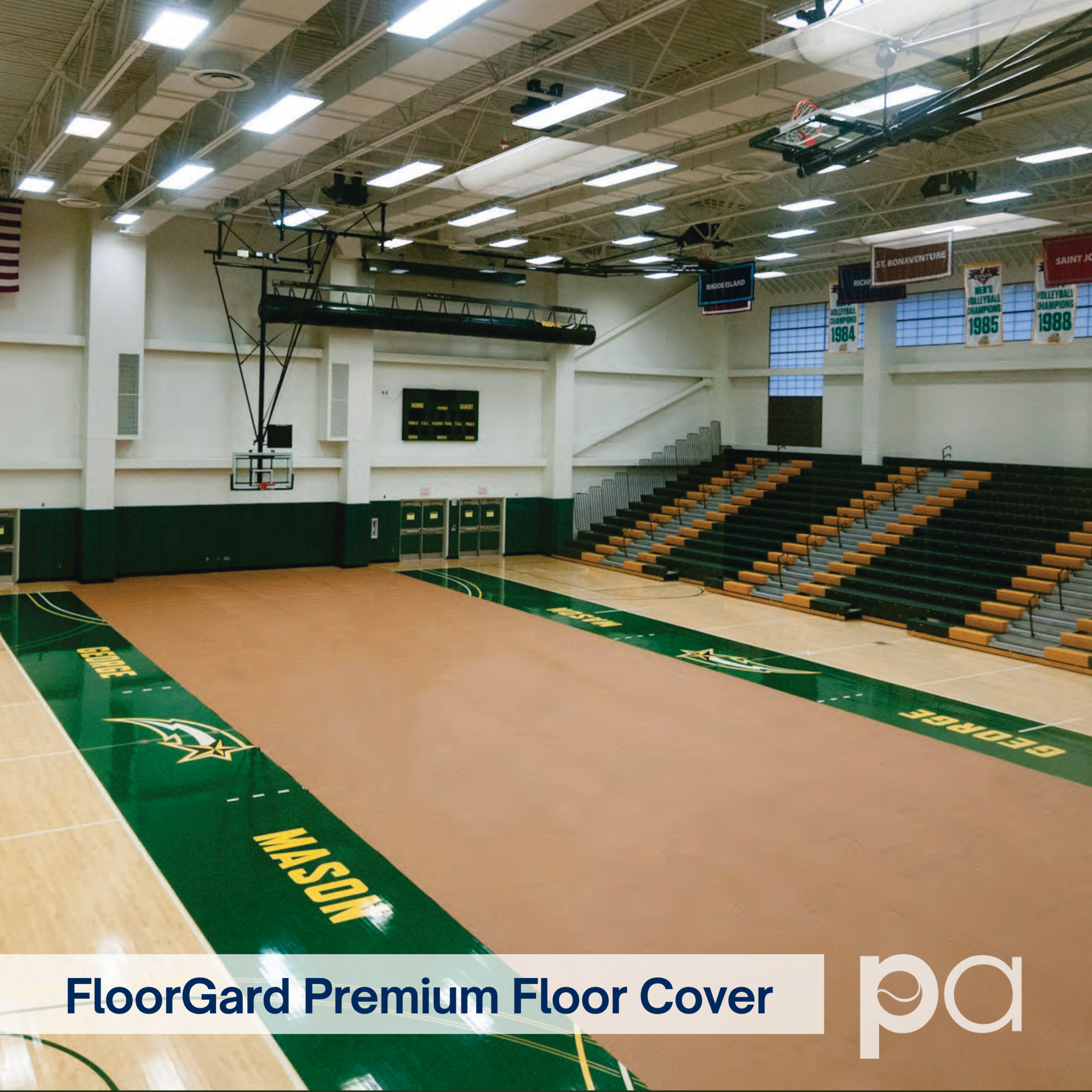 Our FloorGard Premium Gym Floor Covers are made using vinyl-coated polyester material that is matte embossed, slip-resistant, and able to withstand foot traffic, high heels, and furniture.
