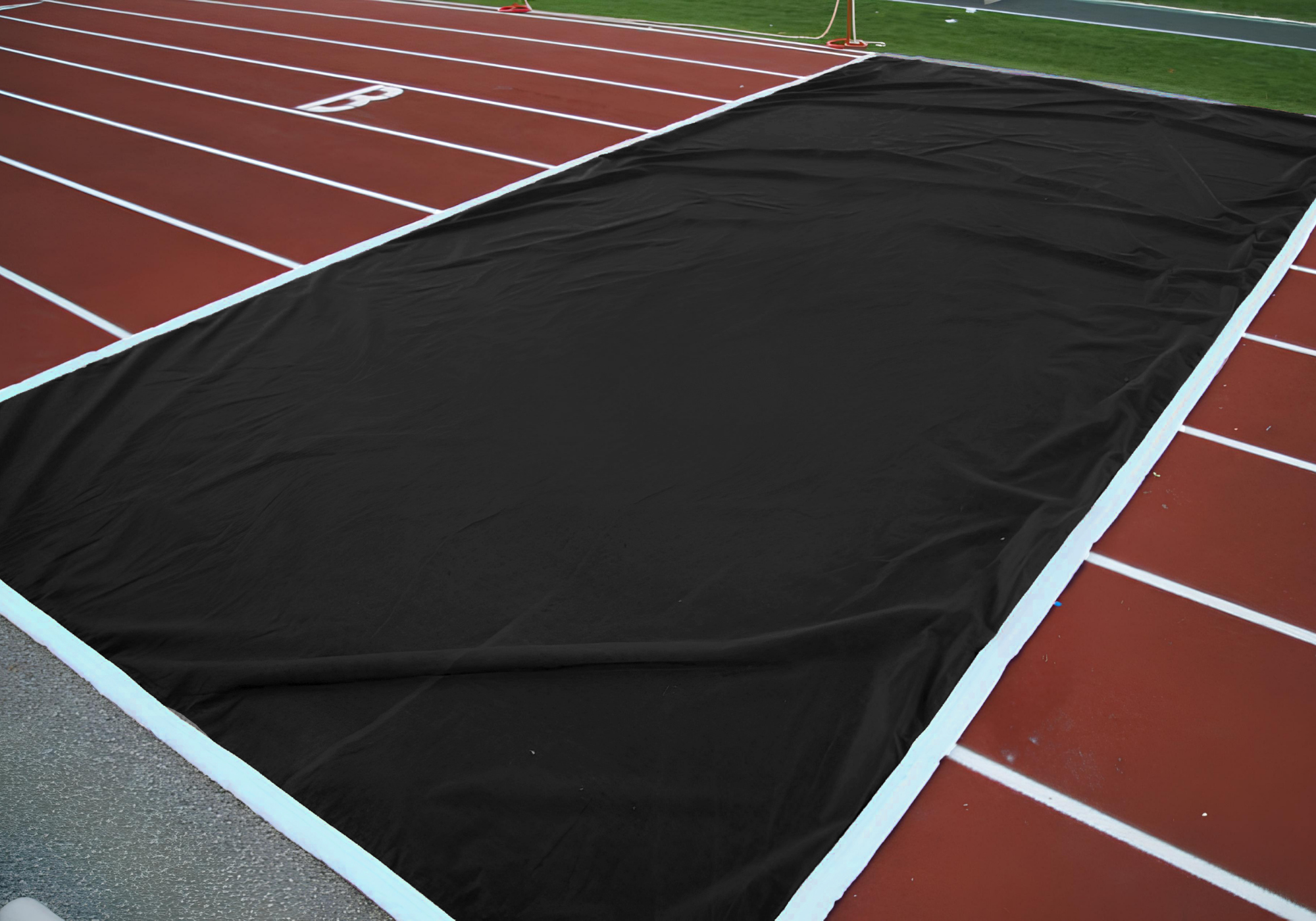 Guardian Cut-Across Track Protectors are the ideal solution for protecting your track from the wear and tear associated with foot and cleat traffic, equipment, and the overall abuse tracks take in and out of an individual sport’s seasons. We offer two options for our Guardian Cut-Across Track Protectors. Both our track protectors have a chain-weighted, vinyl perimeter to ensure that the protector stays in place. The difference between the two products rests in the protector’s main fabric component.