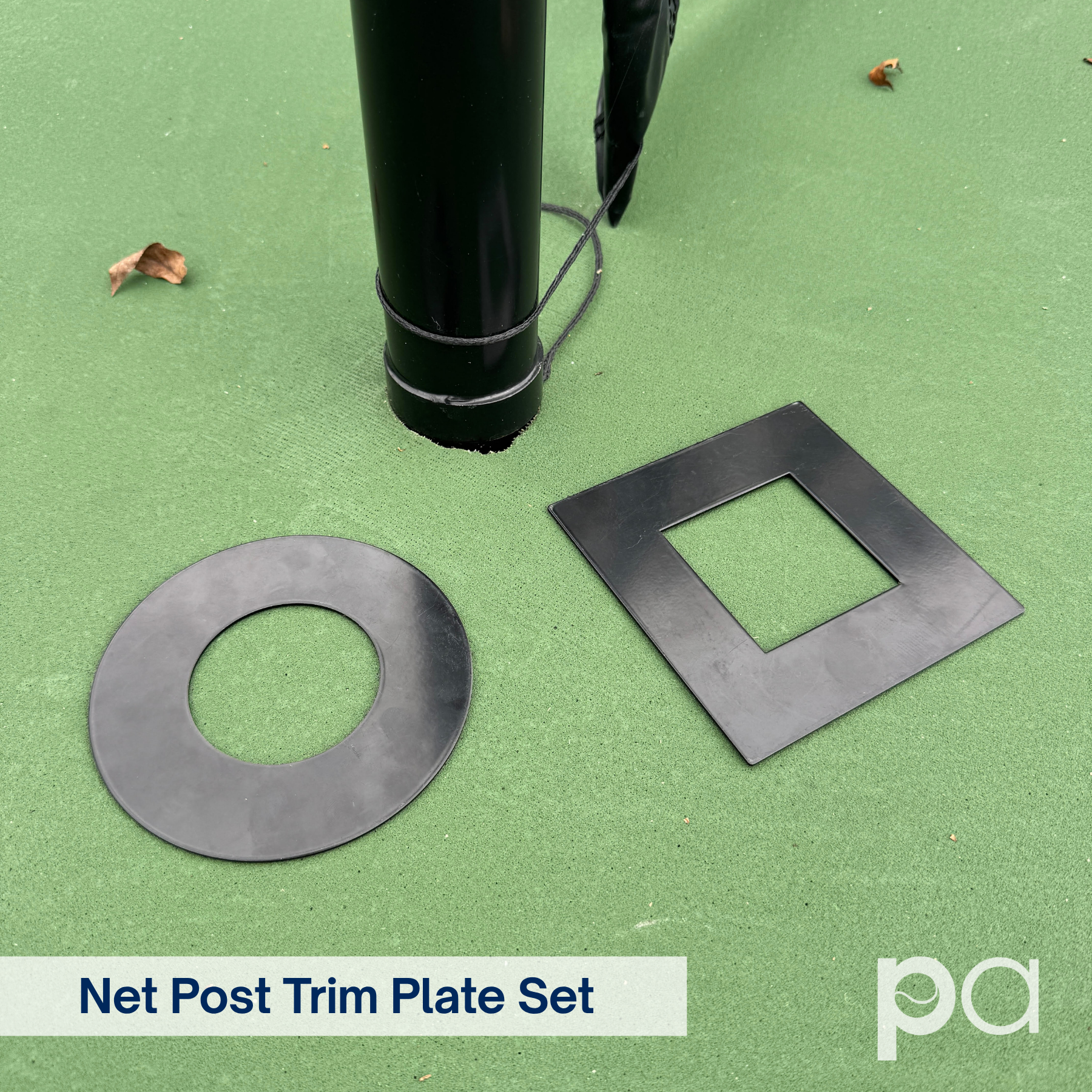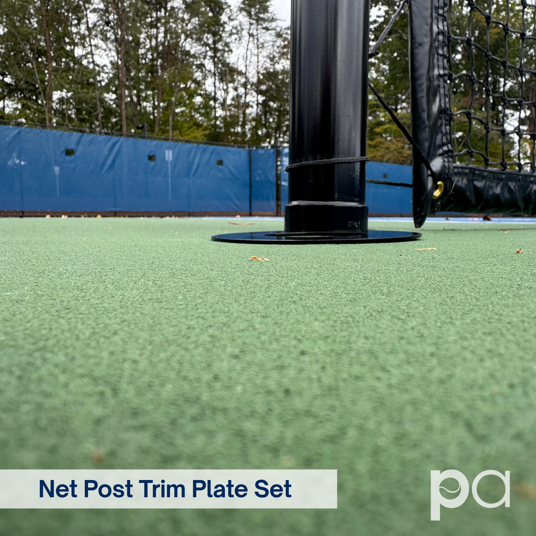 Designed for both tennis and pickleball courts, this trim plate set enhances safety and elevates the appearance of your court by covering open areas around net post sleeves. Each set adds a professional finish while protecting the court surface.