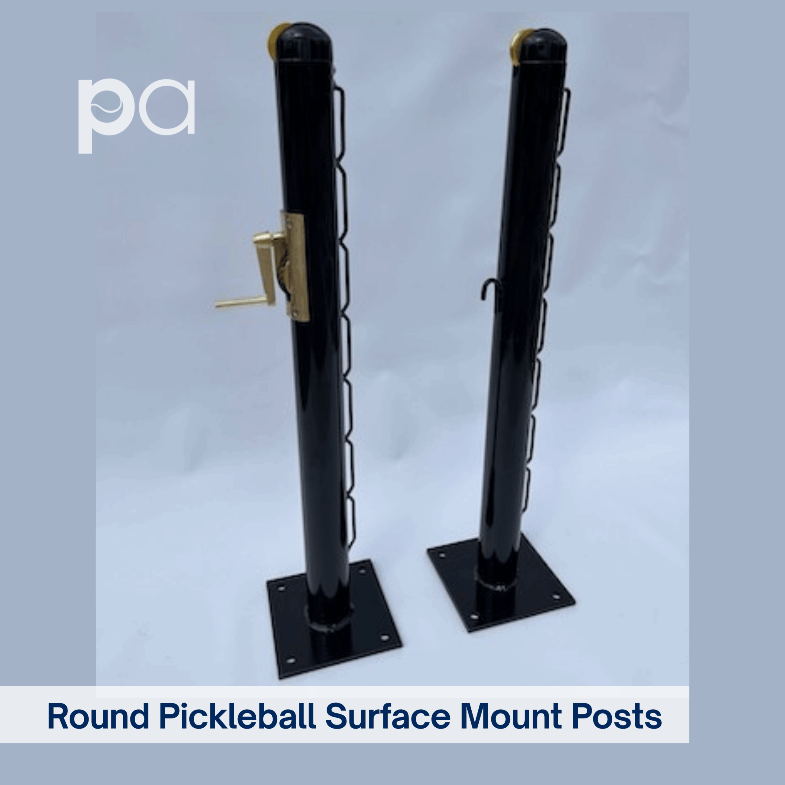 We offer Round Pickleball Surface Mount Posts for permanent pickleball courts. These posts are constructed using a heavyweight steel base plate, and they are built to last.