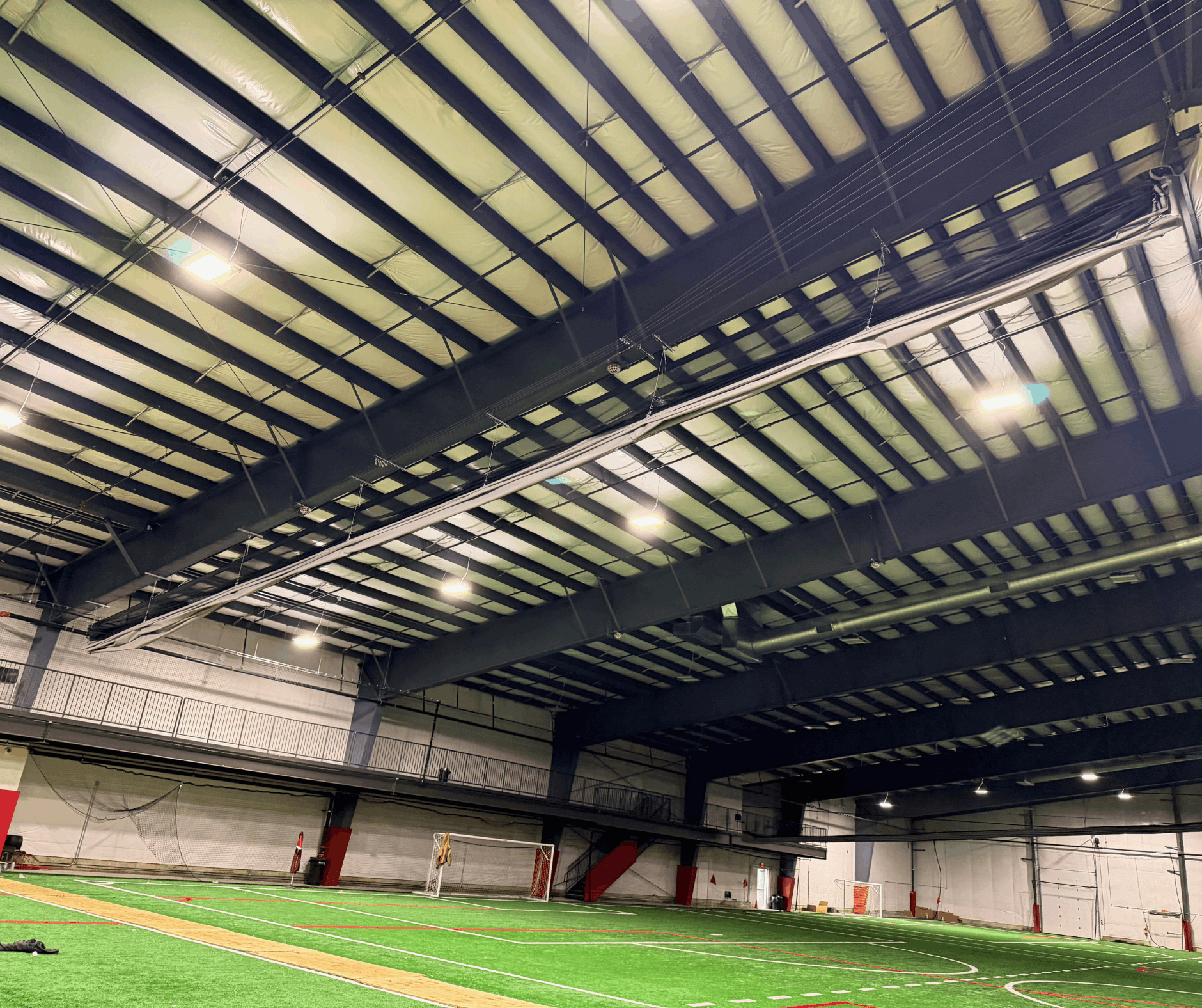 This lap fold style Slope-Fold Gym Divider Curtains are similar to the Fold-Up Gym Divider Curtain but offer the additional design feature of fitting flush against a pitched ceiling. This gym divider curtain folds neatly for storage as the concealed bottom tube rises at the same pitch as the ceiling above.